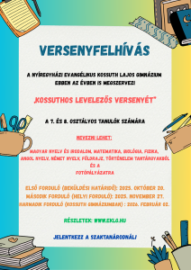 A Nyíregyházi Evangélikus Kossuth Lajos Gimnázium ebben az évben is megszervezi „Kossuthos levelezős versenyét” a 7. és 8. osztályos tanulók számára.
