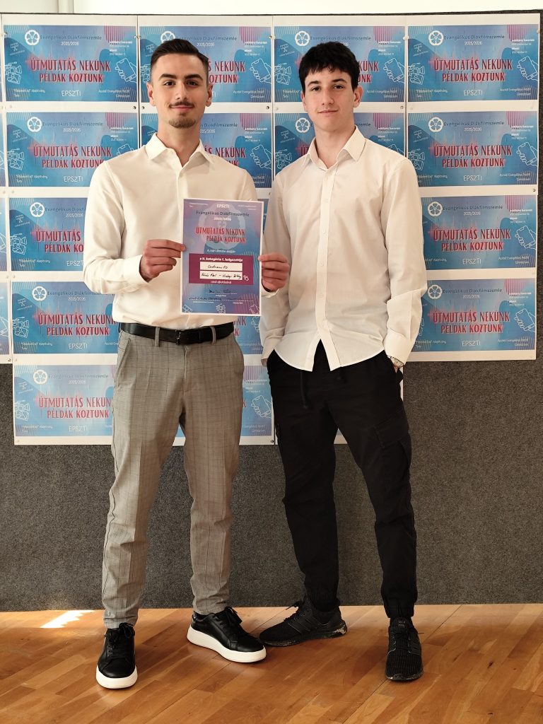 1. Virányi Zétény és Jónás Ábel 11.C osztályos diákok a Cantemus kórus 50. jubileumi előadásáról készített kisfilmjükkel az “Útmutatás nekünk, példák közöttünk” kategóriában első helyezést értek el.