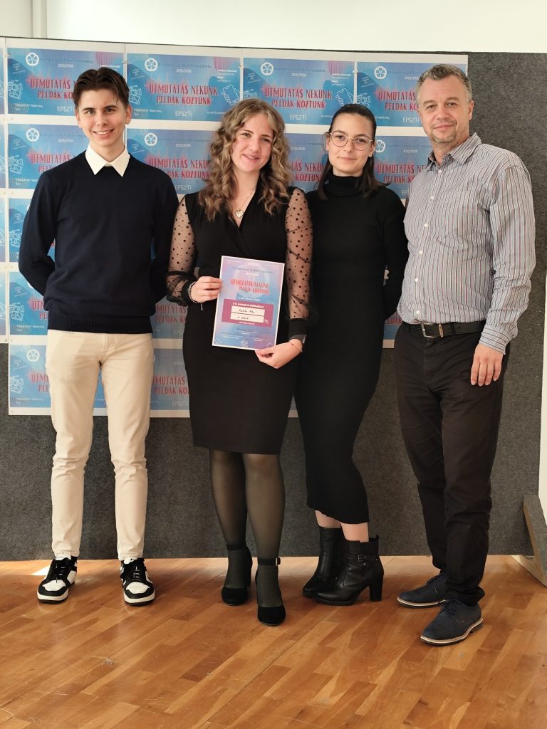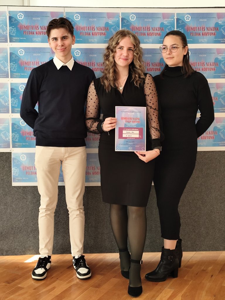 2. Asztalos Réka, Lengyel Orsolya, Kovács Dominik 12.C osztályos tanulók “A hódoló” című kisfilmjükkel a szabadon választott témában különdíjban részesültek.